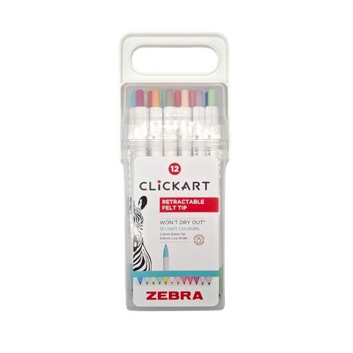 Filctoll készlet, nyomógombos, 0,6 mm, ZEBRA "Clickart" 12 különböző pasztell szín
