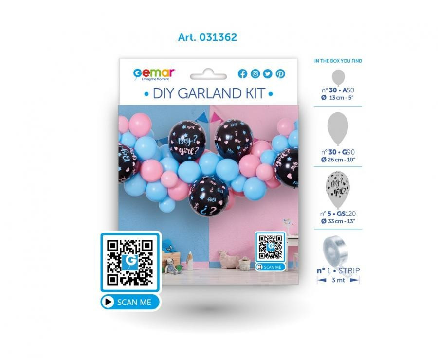 Fiú vagy Lány He or She léggömb, lufi girland szett 65 db-os