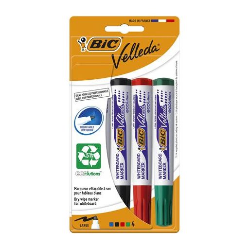 Flipchart- és táblamarker készlet, 1,4 mm, kúpos, BIC" Velleda ecolutions", 4 különböző szín
