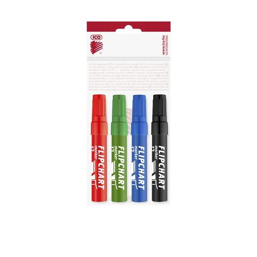 Flipchart marker készlet, 1-4 mm, vágott, ICO "Artip 12", 4 különböző szín