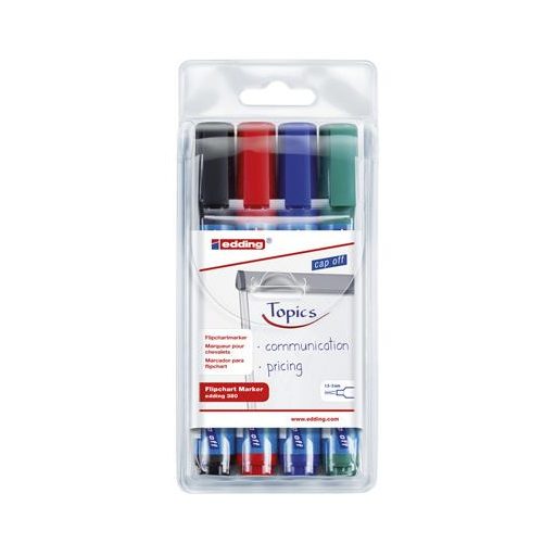 Flipchart marker készlet, 1,5-3 mm, kúpos, EDDING "380", 4 különböző szín