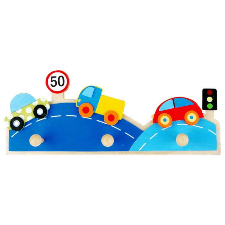Fedezze fel modern és izgalmas játékainkat, vásárolja meg termékünket kényelmesen webáruházunkból! Fábol készült hármas fogas. Könnyen falra rögzíthető 2 csavar segítségével. Egy különleges bútorkiegészítő,vidám,színes kivitelben. A díszítés során használt autóknak köszönhetően biztosan a gyerekek nagy kedvence lesz. Termékméret:29x5,5x11cm