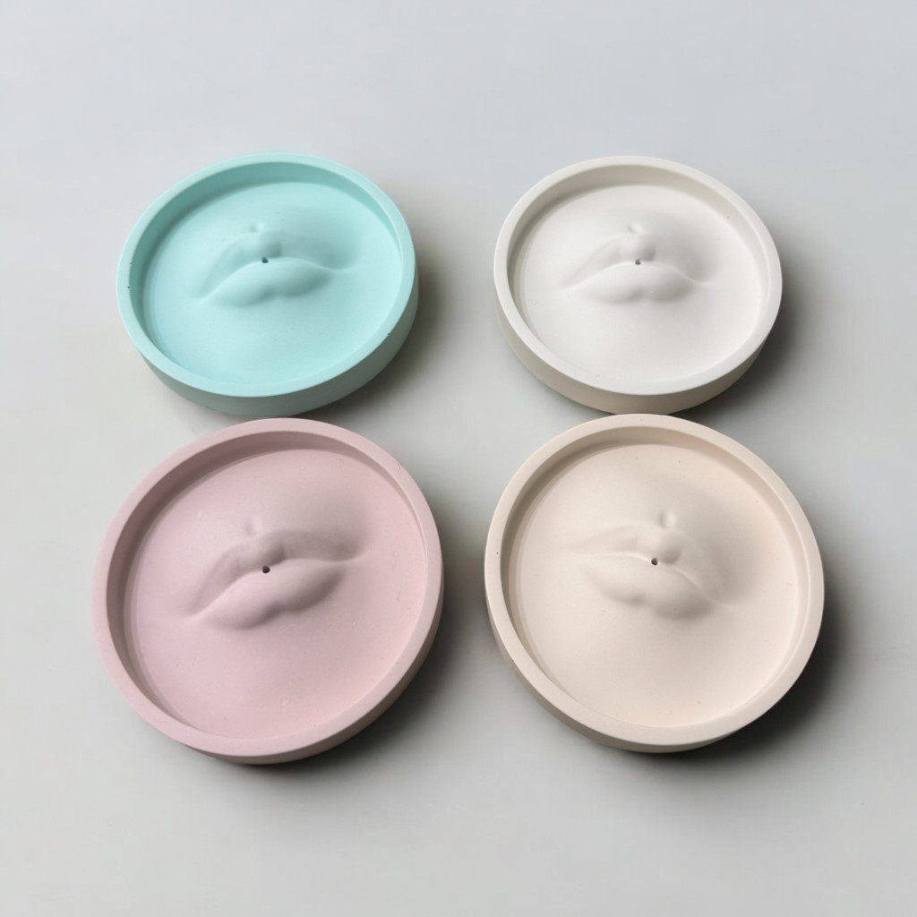 Ez a 10 cm átmérőjű, ásványgyantából készült kerek füstölőtartó különleges száj formával díszítve nemcsak funkcionális, hanem egyedi dekorációs elem is.