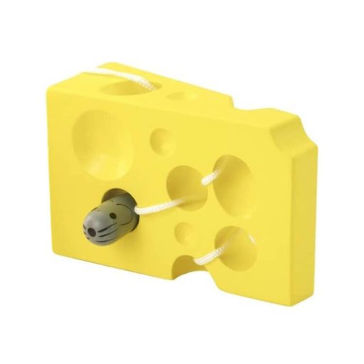 Fűzőcske színes (sajt). Fából készült készségfejlesztő játék, amelyhez tartozik egy fa botocskával végződő zsinór. Az egerek járatokat készítenek a sajtba, segíts nekik ki-, és visszajutni, úgy, hogy közben a fűzőmadzag ne gabalyodjon össze. A játéknak köszönhetően fejlődik a problémamegoldó képesség, a szem-kéz koordináció, finommotorika, valamint a kézügyesség. Egyéni játék, óvodás korú gyermekek számára kiváló fejlesztő eszköz, ezért intézmények számára is ajánljuk.