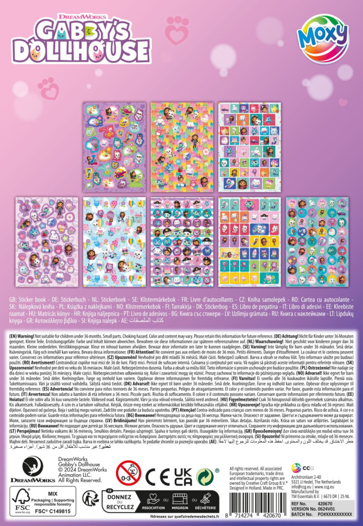 Gabby's Dollhouse, Gabi babaháza csillámos matricás könyv