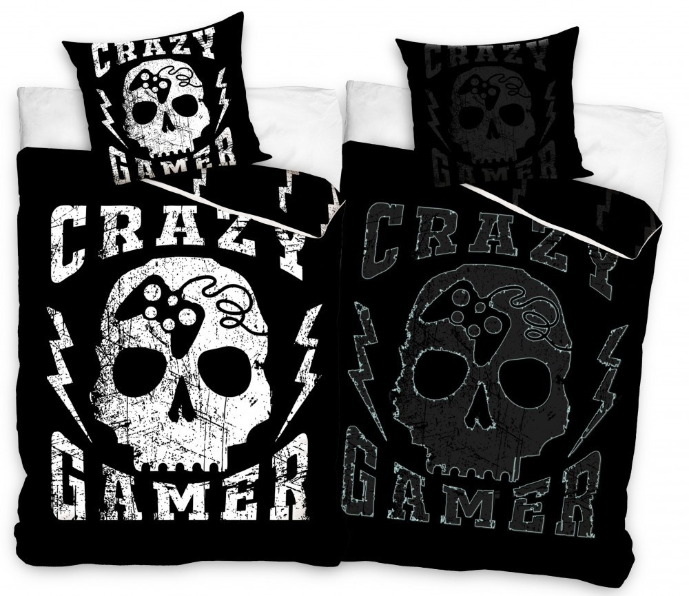 Gamer Crazy sötétben világító ágyneműhuzat 140×200cm, 70x90 cm
