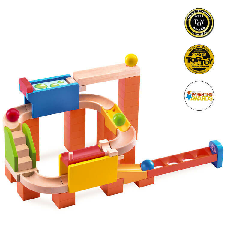 Ez a fából készült első osztályú ügyességi és építő játék remekválasztás, ha szeretné, hogy gyermeke kiélhesse kreativitását, miközben azegész család remekül szórakozik. A különálló elemekből álló termék számtalanfelépítési módot tesz lehetővé, így a golyók útja egyre kiszámíthatatlanabbáválik. Az építődarabokat igazán egyszerű összeállítani, emellett a pálya számostrükköt is tartogat. Sőt, a széria többi elemét is megvásárolhatja, melyek mindkompatibilisek ezzel a modellel – így akár hatalmas golyópályákat is építhetneka gyerekek. Az alábbi videóban megismerheti a játék működését, így mégteljesebb képet kaphat a termékről. Helyezze kosárba még ma, és válasszon mellétovábbi ügyességi játékokatis!