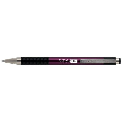 Golyóstoll, 0,24 mm, nyomógombos, mályva tolltest, ZEBRA "F-301 A", kék