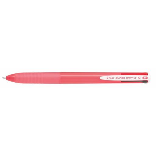 Golyóstoll, 0,27 mm, nyomógombos, rózsaszín tolltest, PILOT "Super Grip G", négyszínű