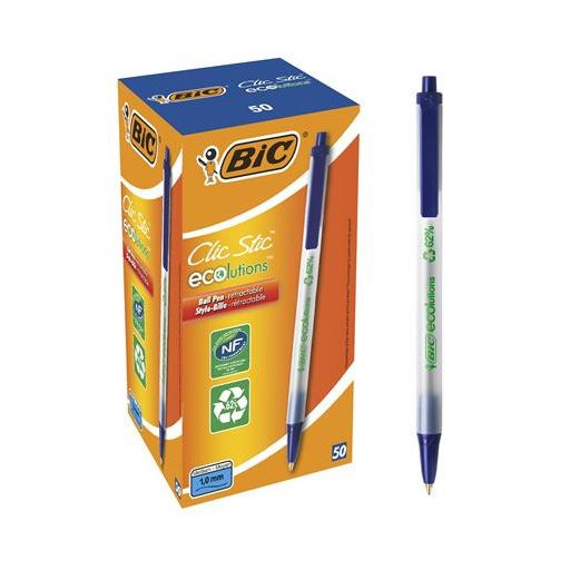 A BIC Clic Stic ECOlutions golyóstoll 62%-ban újrahasznosított műanyagból készül!