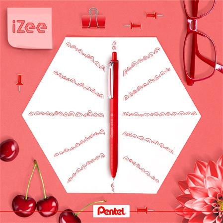 Golyóstoll, 0,35 mm, nyomógombos, PENTEL "iZee", piros