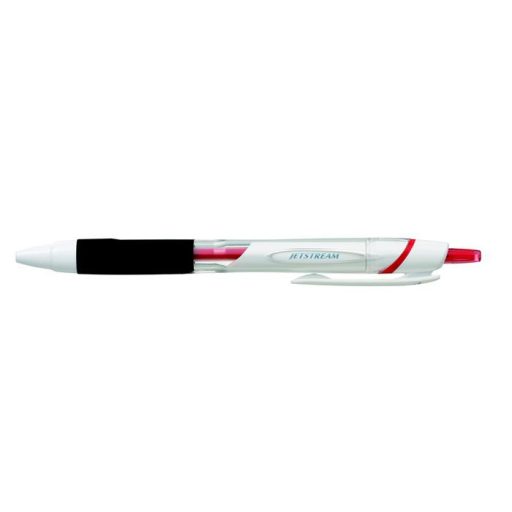 Golyóstoll, 0,35 mm, nyomógombos, fehér tolltest, UNI "SXN-155 Jetstream", piros