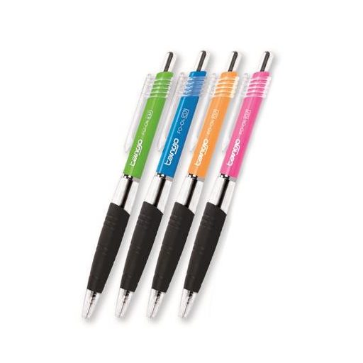 Golyóstoll, 0,35 mm, nyomógombos, vegyes színű, áttetsző test, FLEXOFFICE "Tango", kék