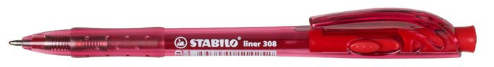 Golyóstoll, 0,38 mm, nyomógombos, STABILO "Liner 308", piros