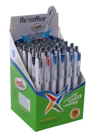 Golyóstoll, 0,4 mm, nyomógombos, vegyes színű tolltest, FLEXOFFICE "Senior", kék