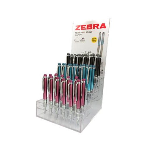 -display tartalma: 12-12 db világoskék, rózsaszín, szürke színű Telescopic Stylus golyóstoll