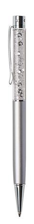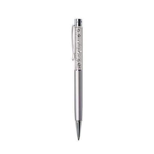 Golyóstoll, ezüst, felül fehér SWAROVSKI® kristállyal töltve, 14 cm, ART CRYSTELLA®