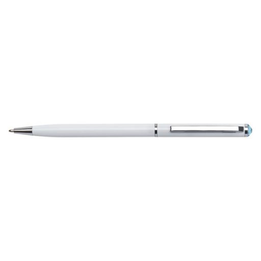 Golyóstoll, fehér "SLIM", aquakék SWAROVSKI® kristállyal, 13 cm, ART CRYSTELLA®