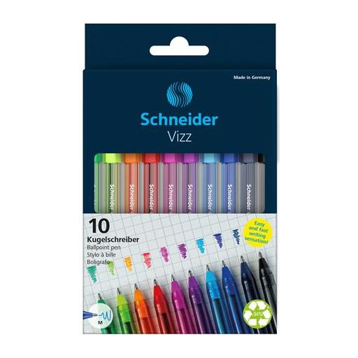 "Vizz", vagyis színes, gyors, nagyon tartós és fenntartható. Ez az írószer készlet, biztosan színt visz az életébe! -nagyszerű írásérzet a Schneider által kifejlesztett, innovatív Gelco® technológiának köszönhetően, mely a zselés- és a golyóstoll tulajdonságait ötvözi -kopásálló rozsdamentesacél tollhegy, amely garantálja a tinta könnyű és hatékony felhasználását -vonalvastagság: 0,5 mm (M) -átlátszó, színes tolltest, melynek köszönhetően a tinta fogyása nyomon követhető -a tolltest és a kupak színe megegyezik a tinta színével -klippel ellátott kupak, mely a toll mindkét végére jól illeszkedik -a tolltest 94%-ban újrahasznosított műanyagból készül -a készlet csomagolása fenntartható - újrahasznosított kartonból készült -a fekete, kék, zöld, világoskék és éjkék színek vízállóak (az ISO 12757-2 szabványnak megfelelően) -eldobható
