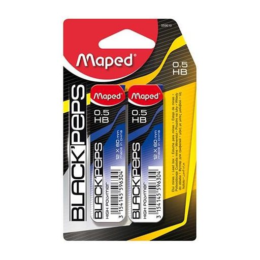 Grafitbél, 0,5 mm, HB, 2x12 szálas, MAPED "Black Peps"