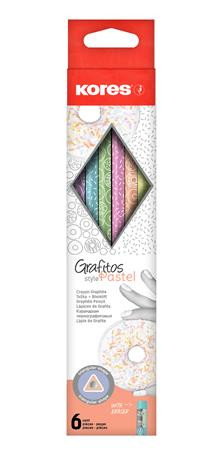 Grafitceruza készlet, radírral, HB, háromszögletű, KORES "Grafitos Style Pastel"