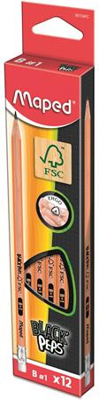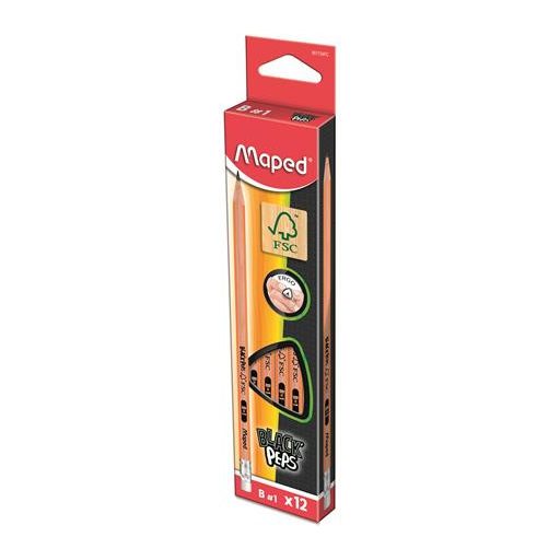 Grafitceruza radírral, B, háromszögletű, MAPED "Black'Peps"