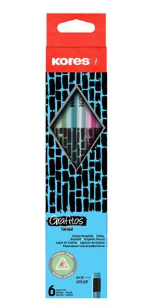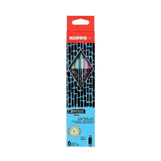 Grafitceruza radírral, HB, háromszögletű, KORES "Style Cracked", vegyes metál színek