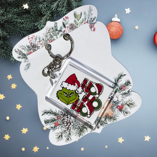 Plexiből készült, a minta fotópapírra nyomtatott és a kulcstartó mind a kettő oldalán látható