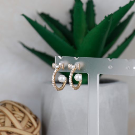 Ez a gyöngyös fülbevaló a kifinomultság és elegancia tökéletes kiegészítője.