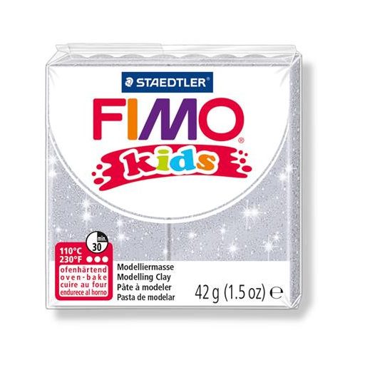 Gyurma, 42 g, égethető, FIMO "Kids", glitteres ezüst