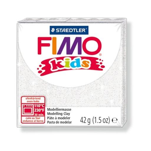 Gyurma, 42 g, égethető, FIMO "Kids", glitteres fehér