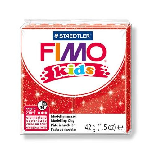 Gyurma, 42 g, égethető, FIMO "Kids", glitteres piros
