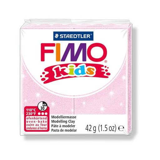 Gyurma, 42 g, égethető, FIMO "Kids", gyöngyház világos rózsaszín