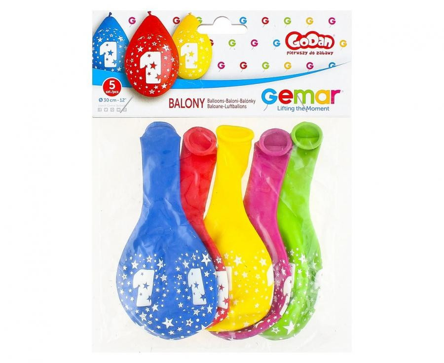 Happy Birthday 1 Star függő léggömb, lufi 5 db-os 12 inch (30 cm)