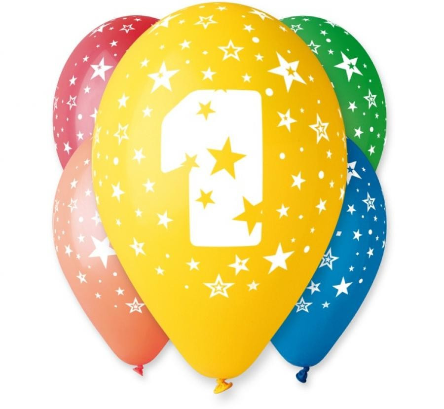 Happy Birthday 1 léggömb, lufi 5 db-os 12 inch (30cm)
