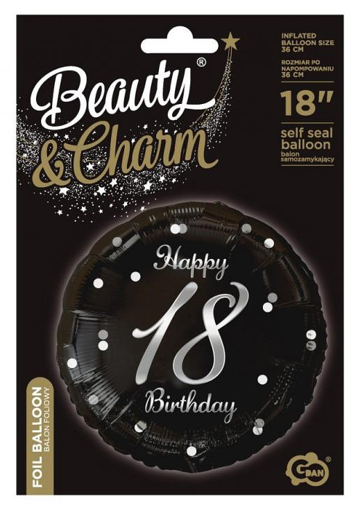 Happy Birthday 18 B&C Silver fólia lufi 36 cm