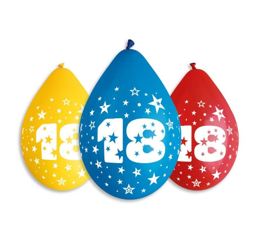 Happy Birthday 18 Star függő léggömb, lufi 5 db-os 12 inch (30 cm)