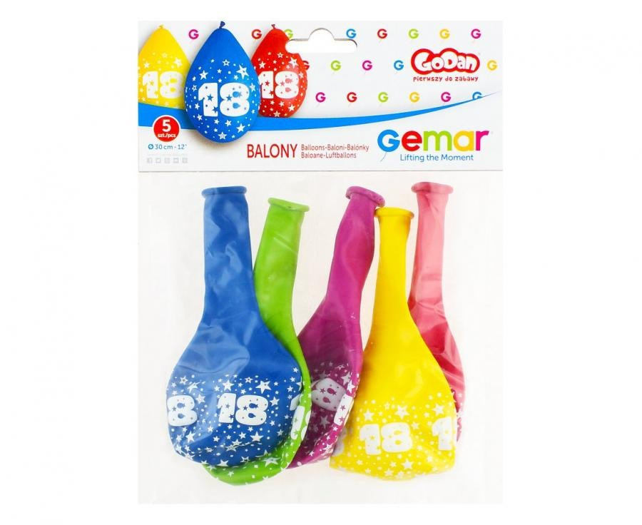 Happy Birthday 18 függő léggömb, lufi 5 db-os 12 inch (30 cm)