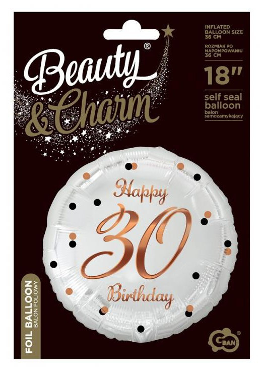 Happy Birthday 30 B&C White fólia lufi 36 cm