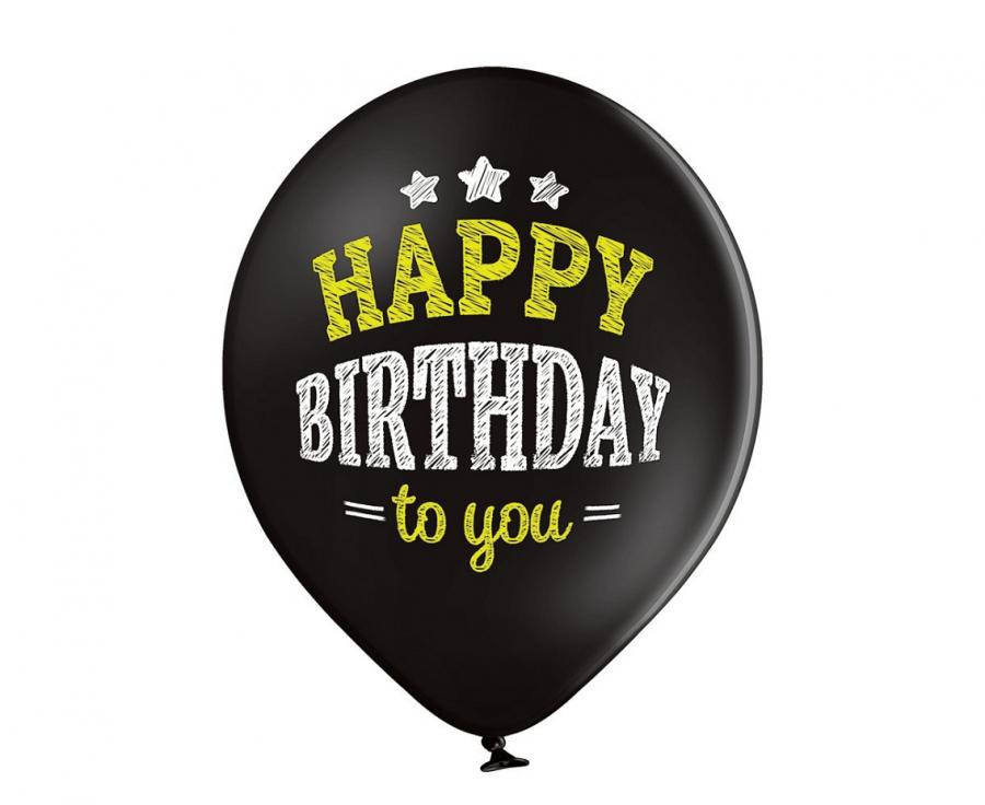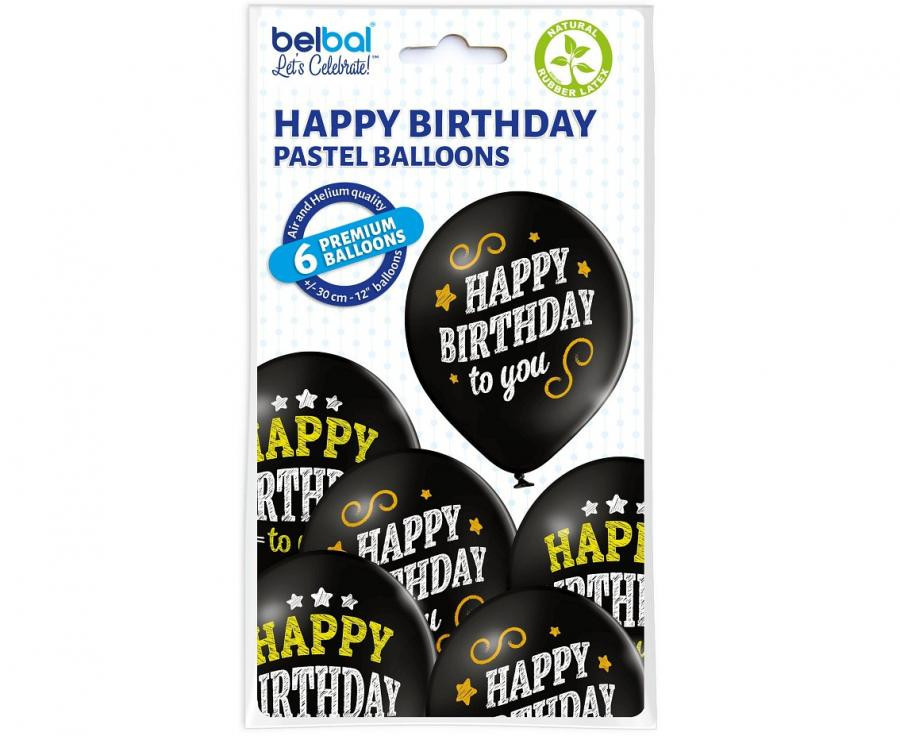 Happy Birthday Black léggömb, lufi 6 db-os 12 inch (30cm)