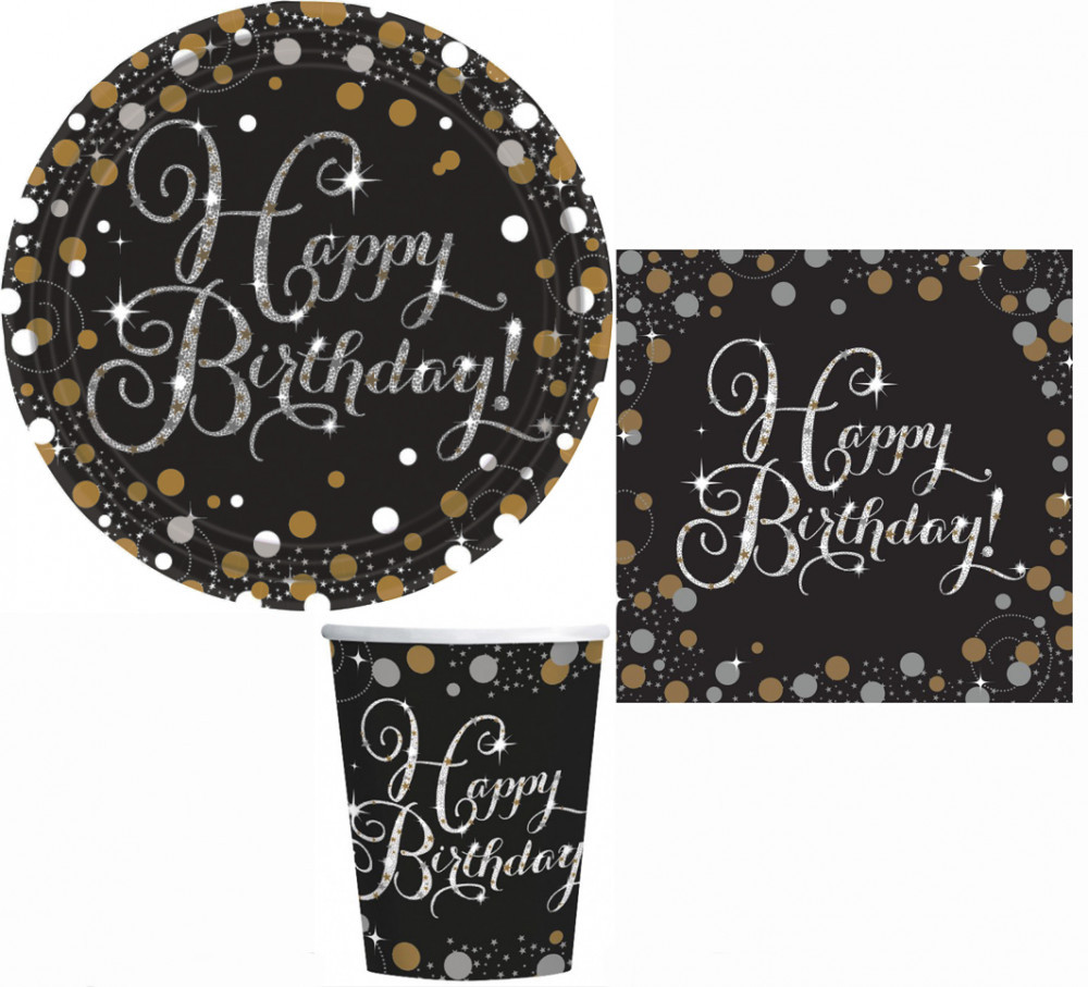 Happy Birthday Gold party szett 32 db-os 23 cm-es tányérral