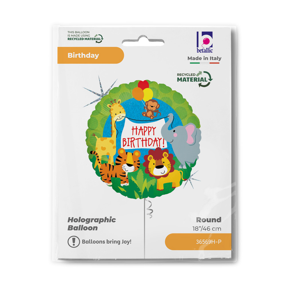 Happy Birthday Jungle Animals Holo fólia lufi 46 cm