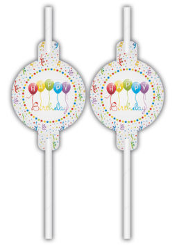 Happy Birthday Streamers papír szívószál 4 db-os szett
