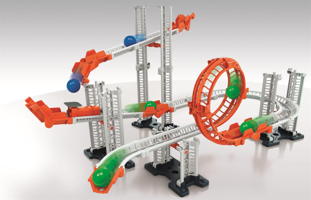 - felépítheted pályarendszeredet, melynek kihívása, hogy olyan pályát alkoss, amelyen a végighaladó golyók hatására több elem is mozgásba lendüljön