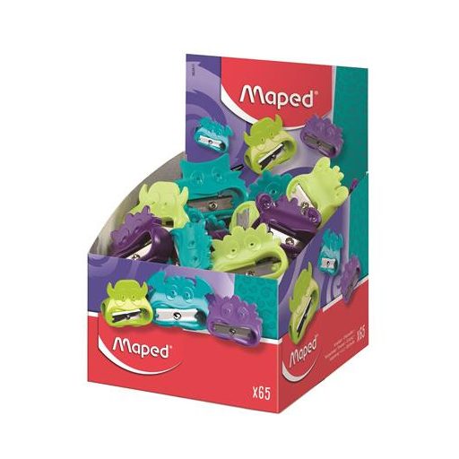 65 db tartály nélküli, egylyukú, műanyag, szörnyes ceruzahegyezőt