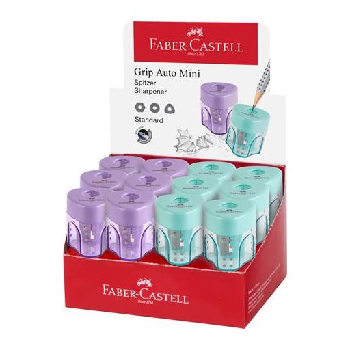 Hegyező display, egylyukú, tartályos FABER-CASTELL "GRIP Auto Mini", vegyes pasztell színek