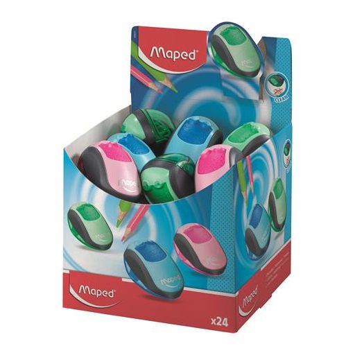 Hegyező display, kétlyukú, tartályos, MAPED "Clean", vegyes színek