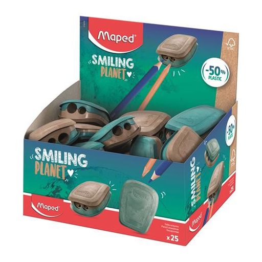 Hegyező display, kétlyukú, tartályos, műanyag, FSC, MAPED "Smiling Planet"