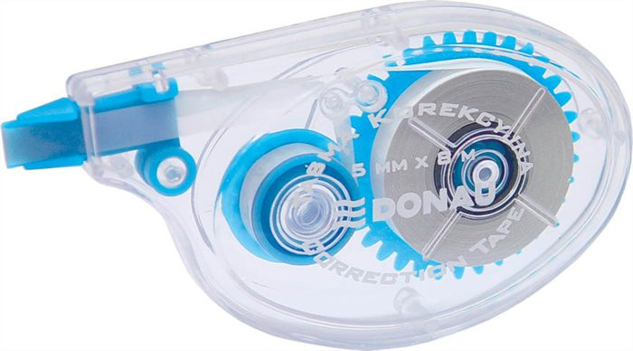 Praktikus hibajavító roller -tökéletes fedőképesség -azonnal felülírható, fénymásolaton nem látszik -elfordított fej a könnyebb használat érdekében -szalag hossza 8 m, szélessége 5 mm -nem utántölthető