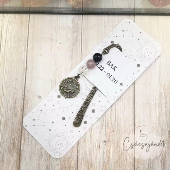 Csillagjegyhez tartozó ásványgyöngyökkel díszítve.